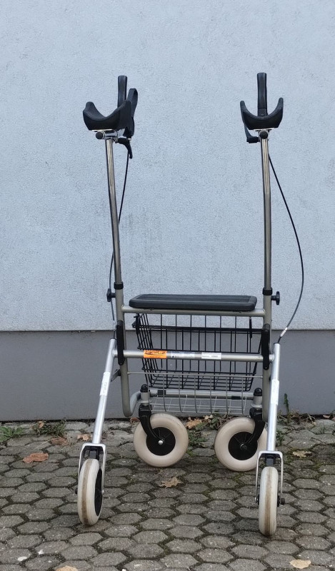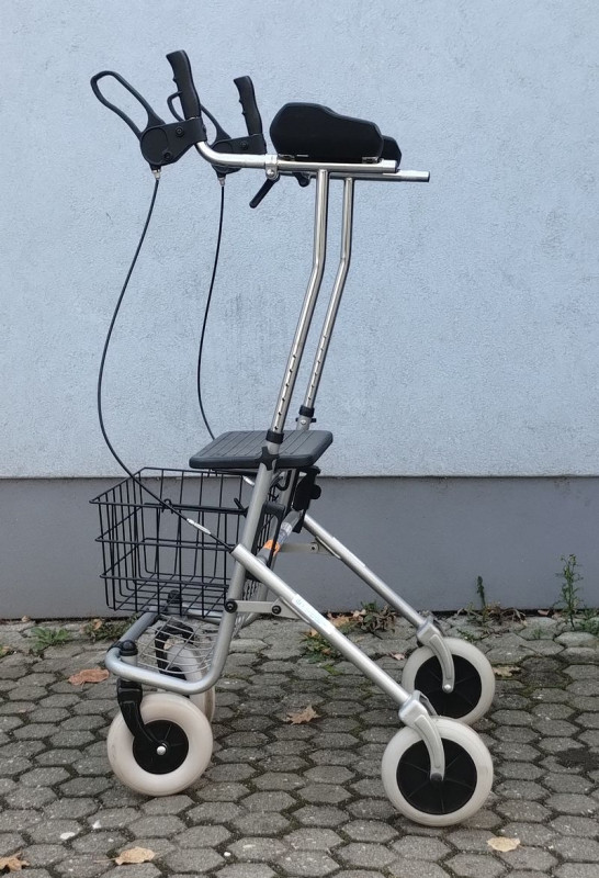 Předloketní čtyřkolové chodítko pro seniory a zdravotně postižené vhodné do interiéru i exteriéru.