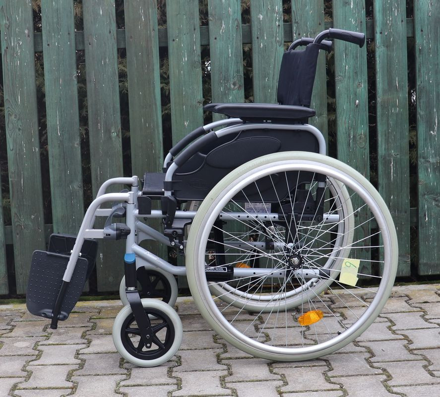 Mechanický invalidní vozík Invacare.Šíře sedu 45 cm.Hloubka sedu 44 cm.Výše zad 43 cm.Celková šíře 64 cm.Přední i zadní kola plná.