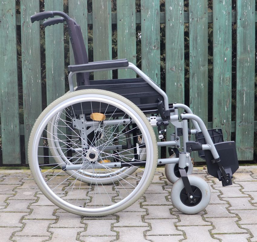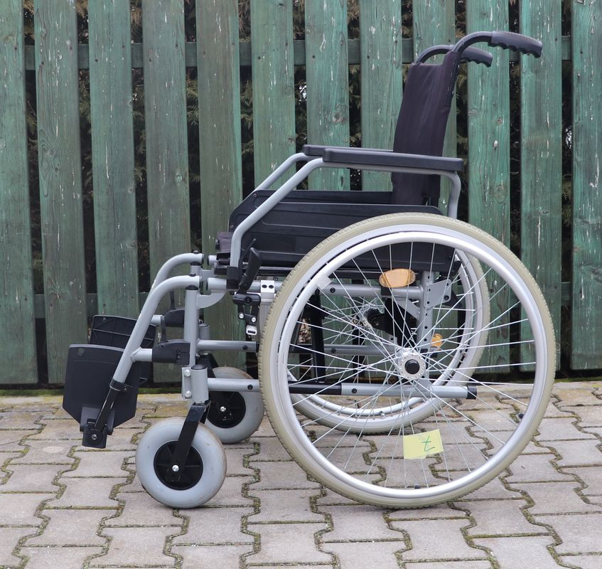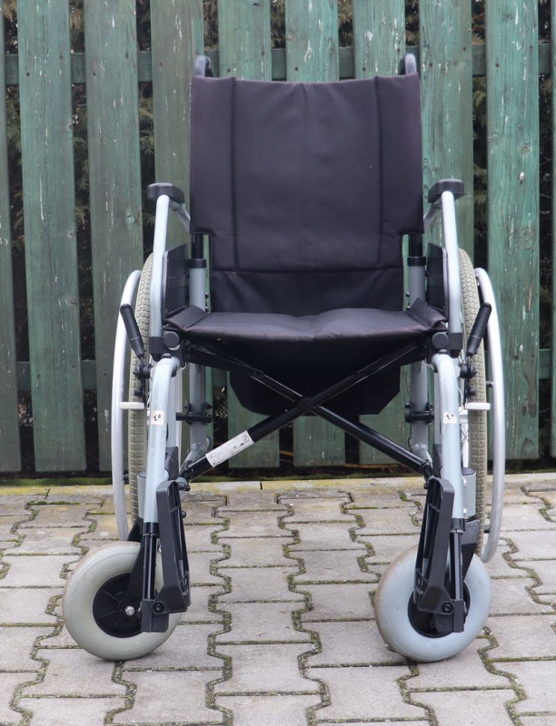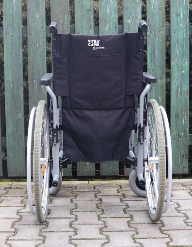 Mechanický invalidní vozík Vitea-Care.Šíře sedu 42 cm.Hloubka sedu 42 cm.Výše zad 44 cm.Celková šíře 64 cm.Přední i zadní kola plná.