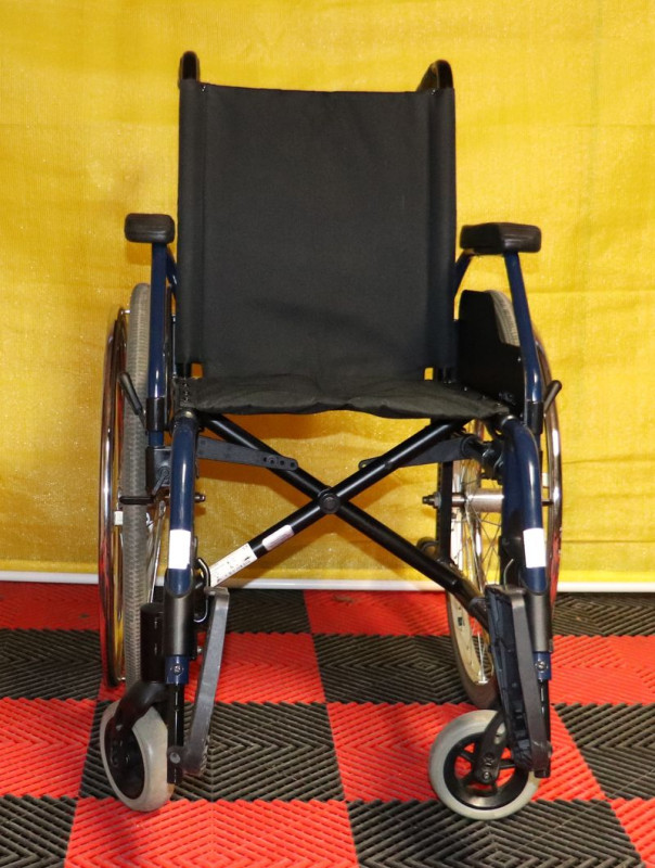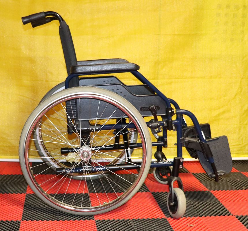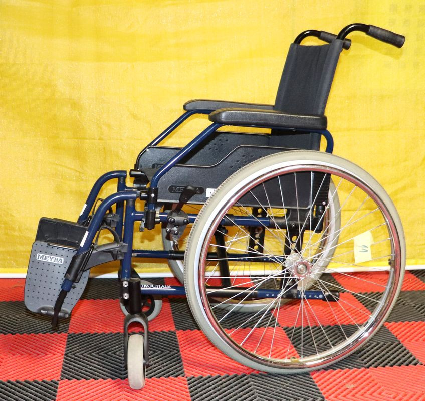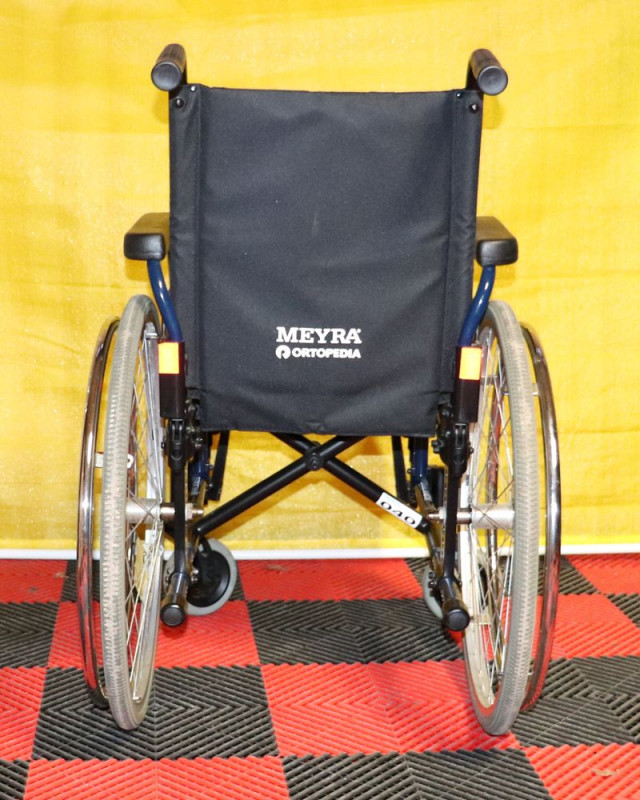 Mechanický invalidní vozík Meyra.Šíře sedu 40 cm.Hloubka sedu 40 cm.Výše zad 42 cm.Celková šíře 59 cm.Přední i zadní kola plná.