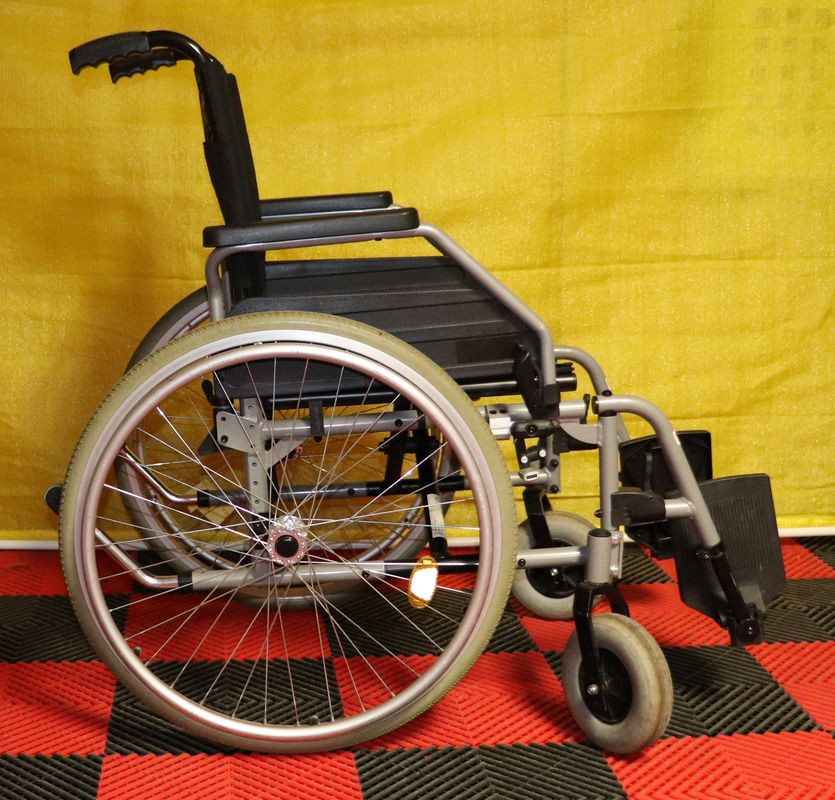 Mechanický invalidní vozík Vitea-Care.Šíře sedu 44 cm.Hloubka sedu 43 cm.Výše zad 44 cm.Celková šíře 66 cm.Přední i zadní kola plná.