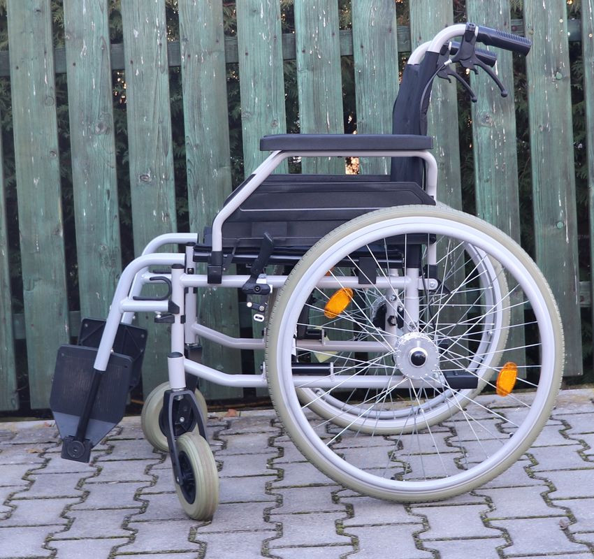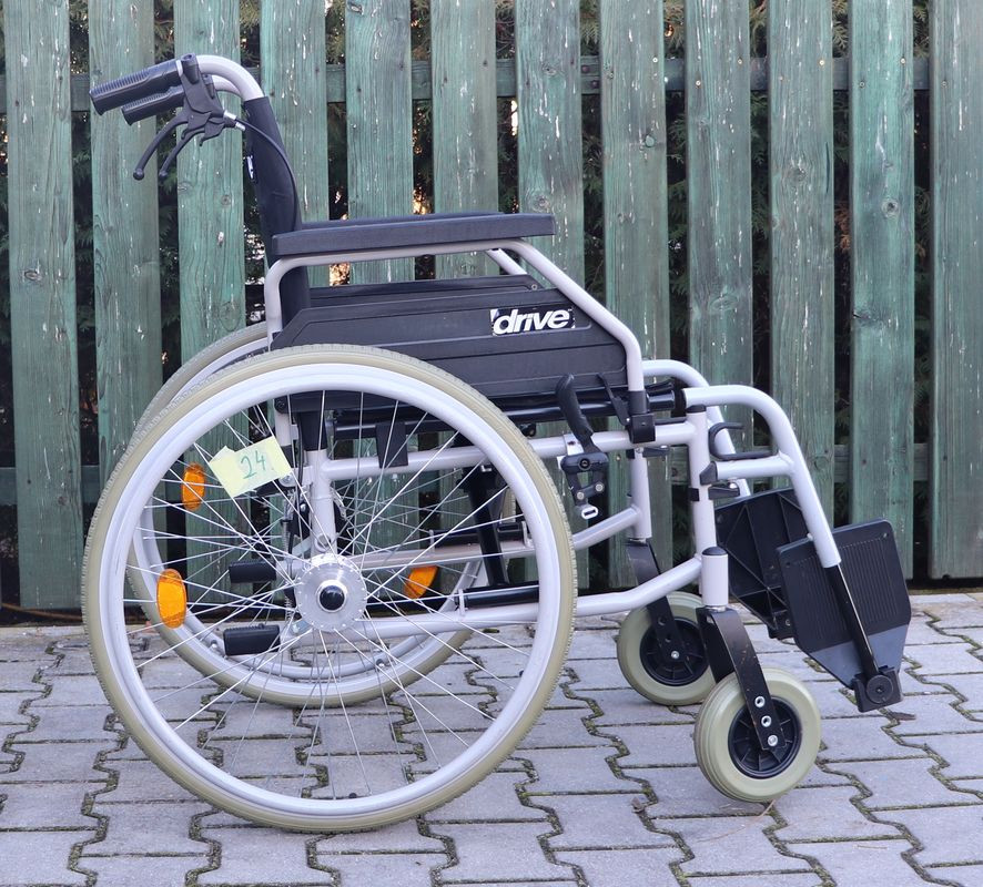 Mechanický invalidní vozík Drive.Šíře sedu 45 cm.Hloubka sedu 44 cm.Výše zad 42 cm.Celková šíře 68 cm.Přední i zadní kola plná.Rychloupínáky.