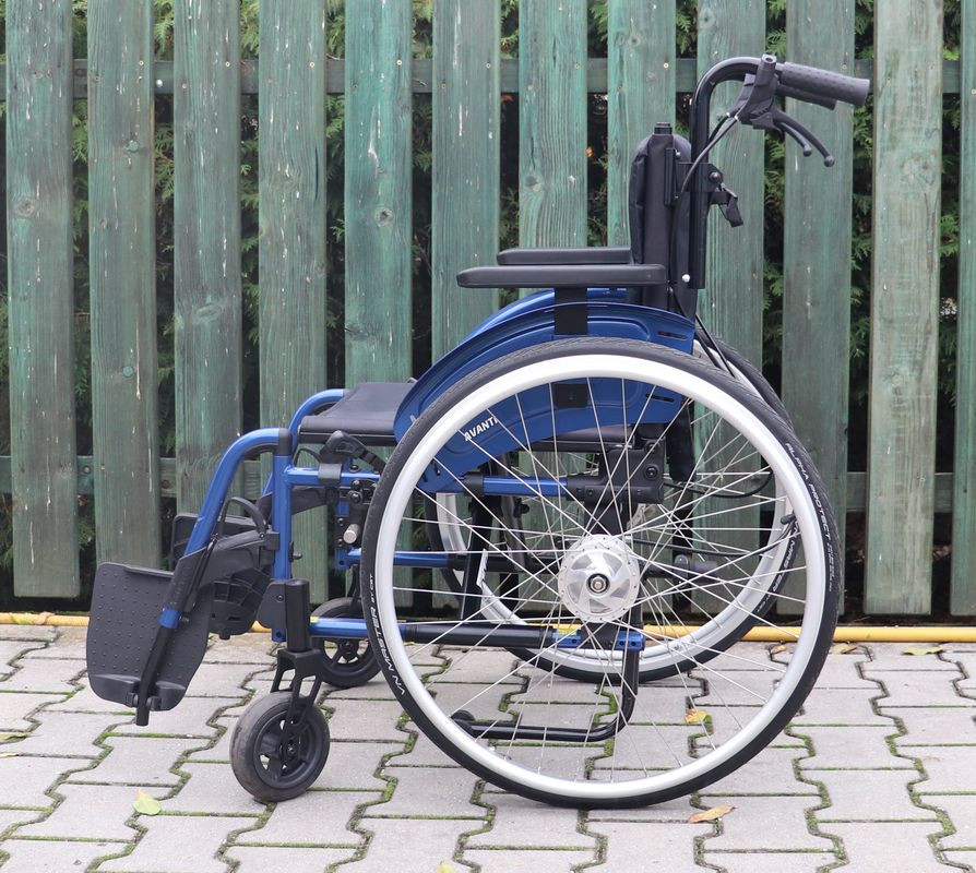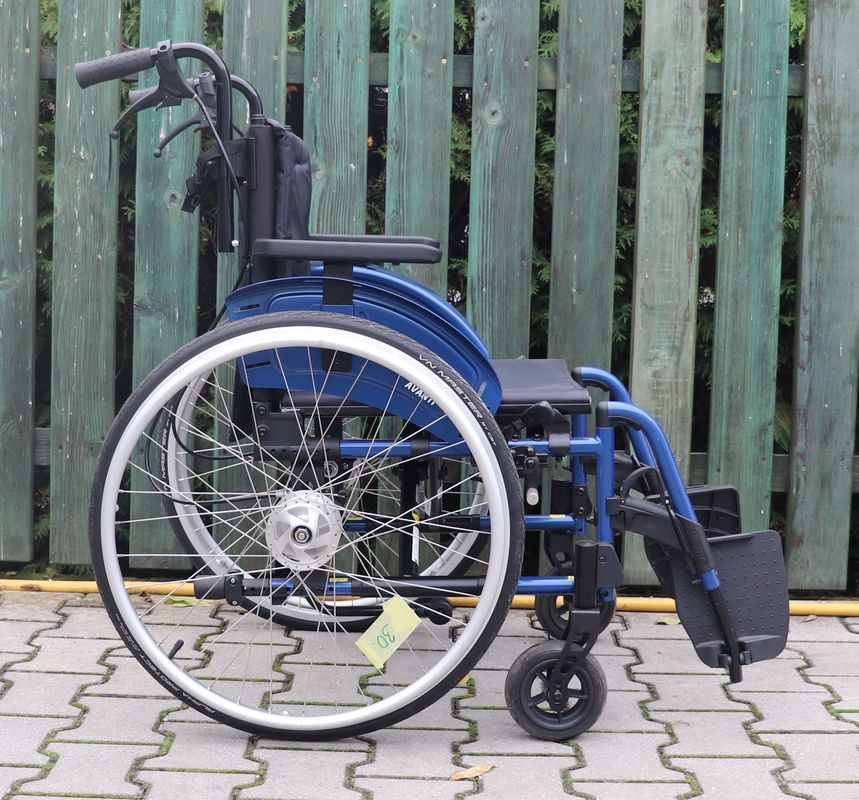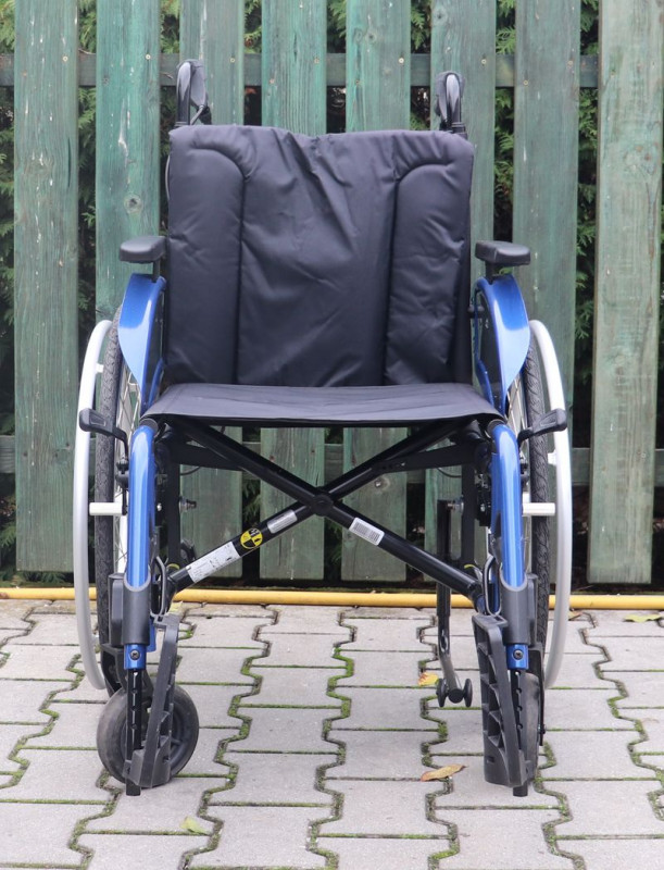 Mechanický invalidní vozík Meyra.Šíře sedu 46 cm.Hloubka sedu 42 cm.Výše zad 42 cm.Celková šíře 66 cm.Přední kola plná.