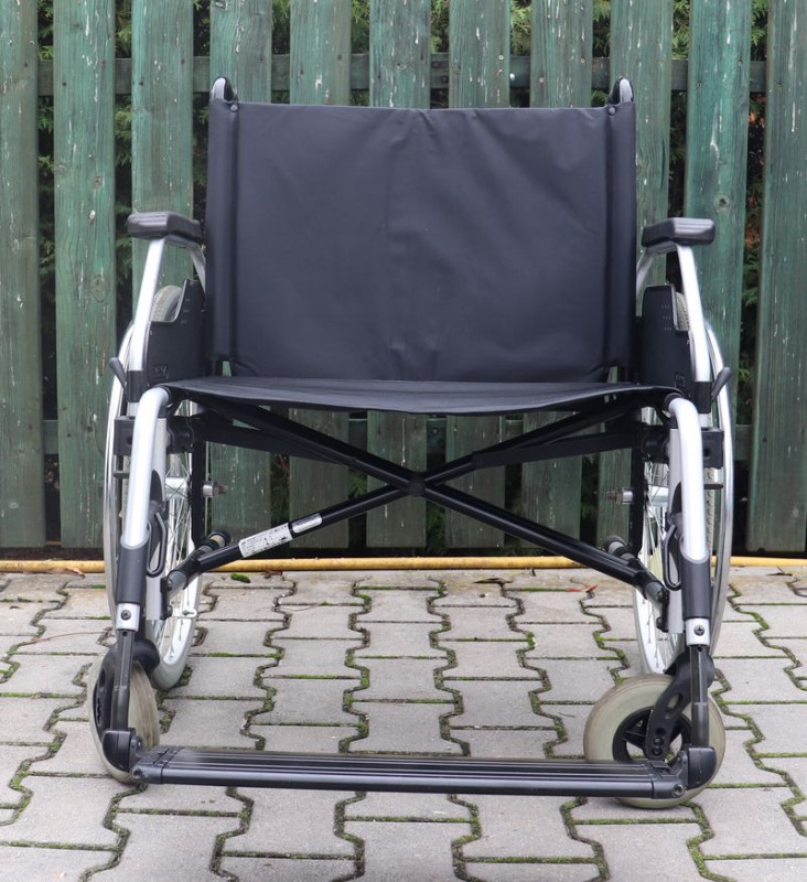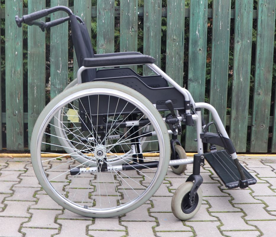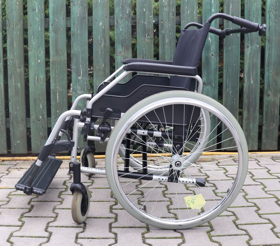 Mechanický invalidní vozík Meyra.Šíře sedu 65 cm.Hloubka sedu 44 cm.Výše zad 44 cm.Celková šíře 84 cm.