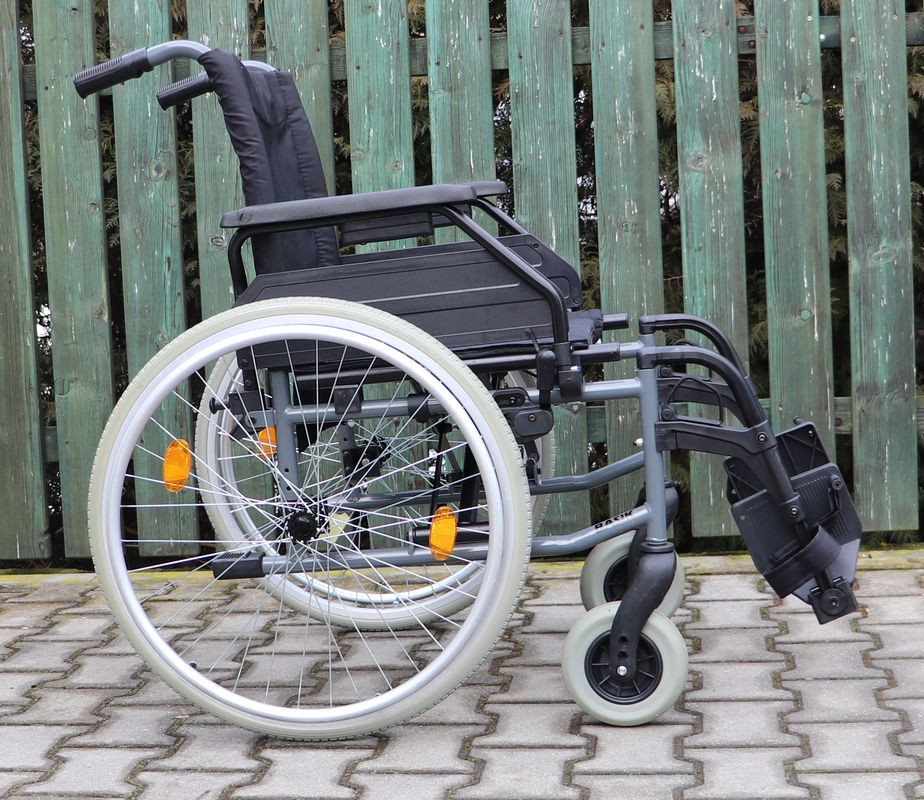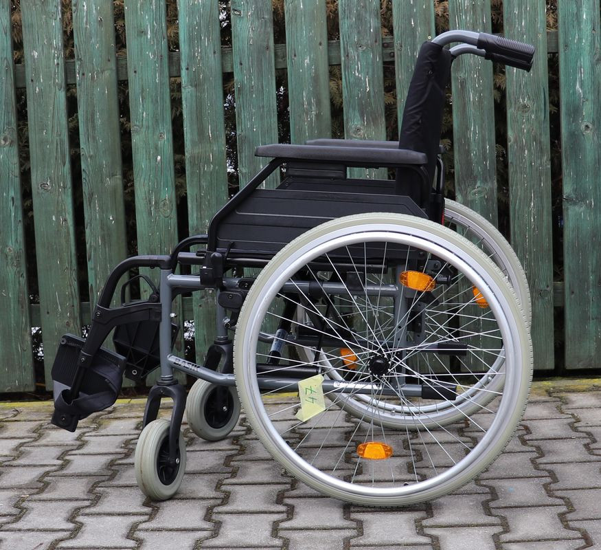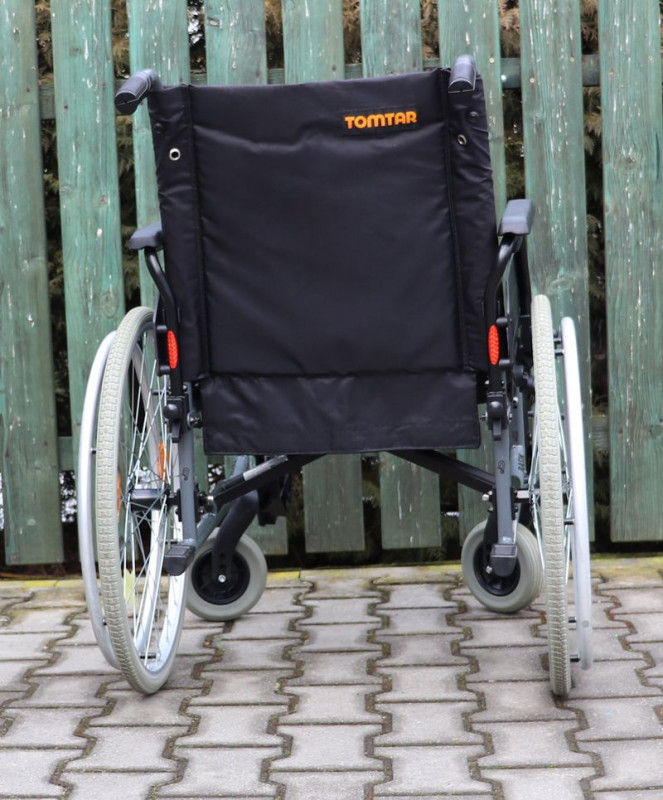 Mechanický invalidní vozík Tomtar.Šíře sedu 51 cm.Hloubka sedu 42 cm.Výše zad 46 cm.Celková šíře 71 cm.Přední i zadní kola plná.