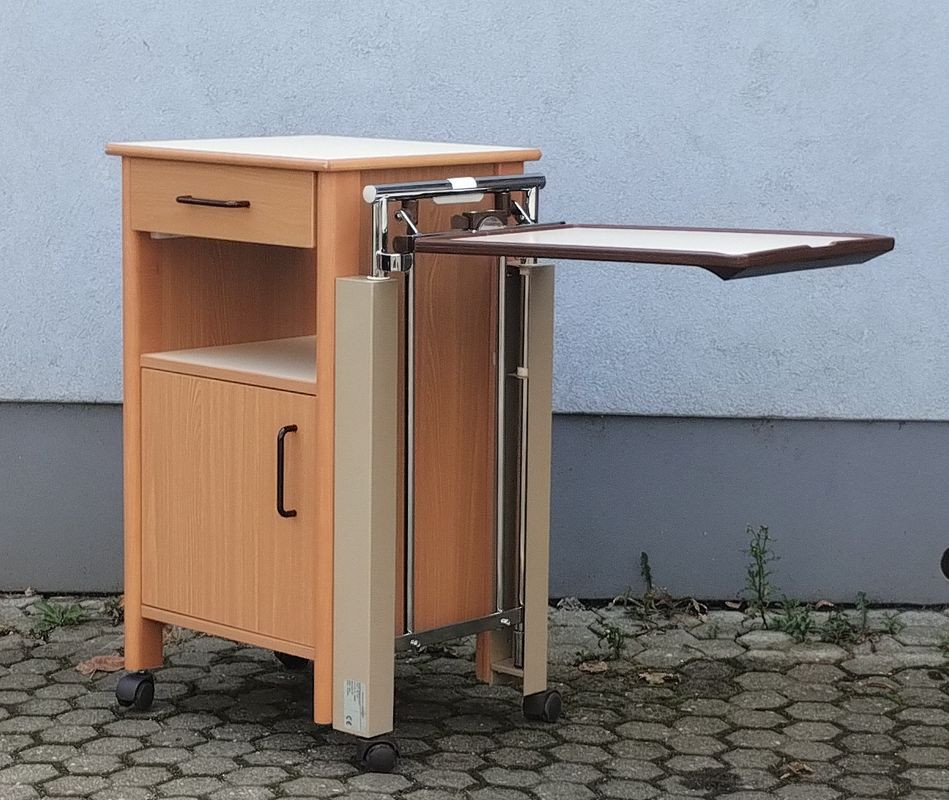 Noční stolek k polohovacímu invalidnímu lůžku.