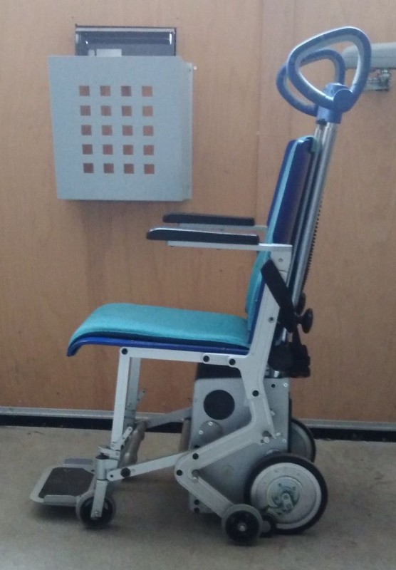 Kolečkový schodolez Scalamobil.Cena včetně židle.Na požádání můžeme židli vyměnit za invalidní vozík.Nové baterie.