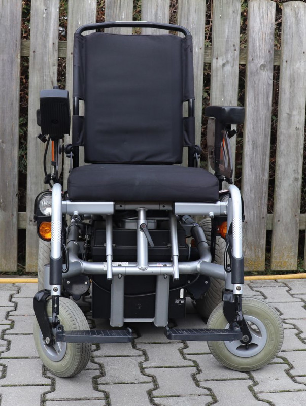 Elektrický invalidní vozík Meyra Champs liftem,Maximální rychlost 6 km/hod.