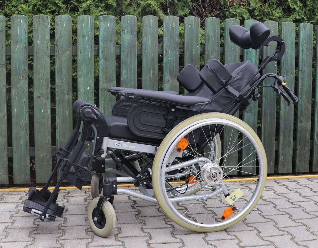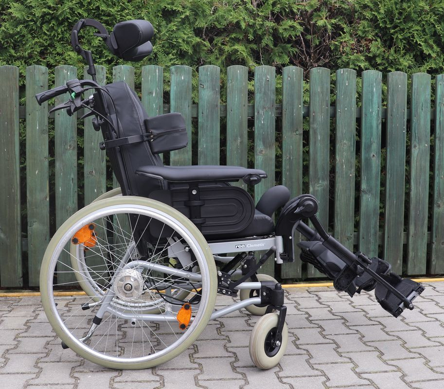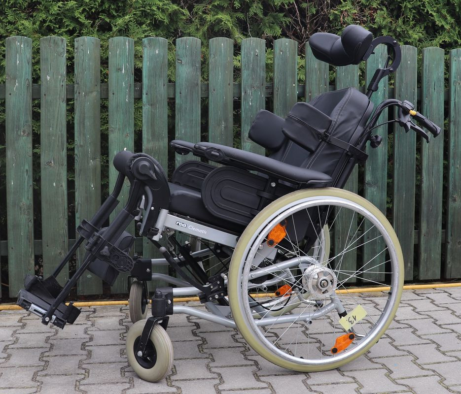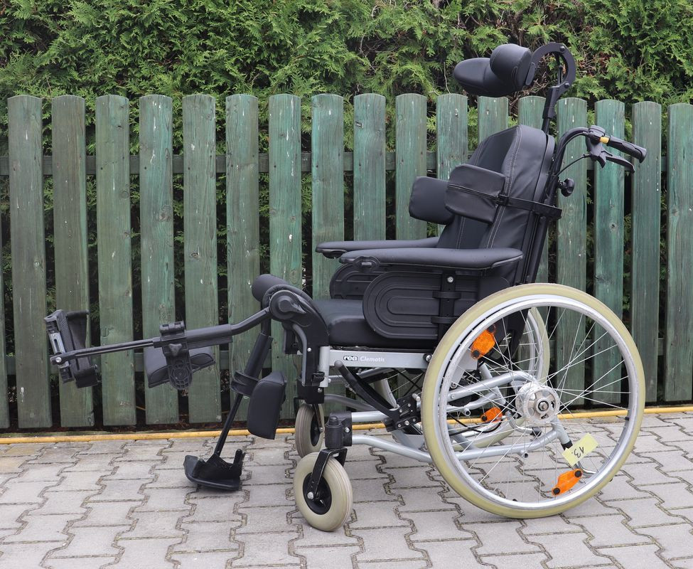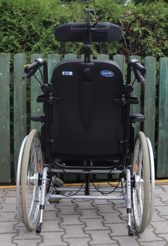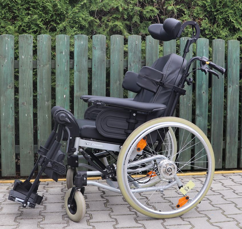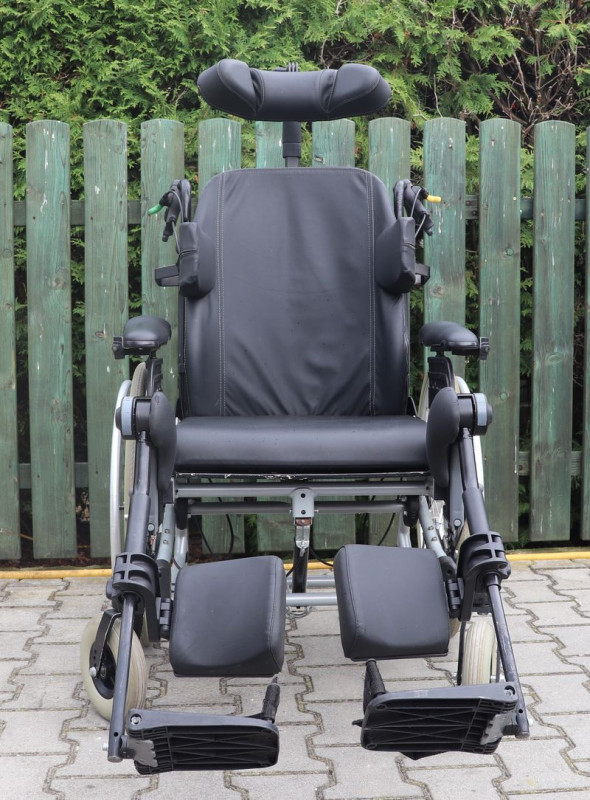Polohovací mechanický invalidní vozík Meyra.Šíře sedu 53 cm.Hloubka sedu 48 cm.Výše zad 54 cm.Celková šíře 74 cm.Přední i zadní kola plná.Rychloupínáky.